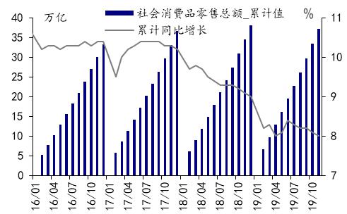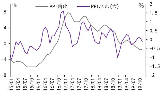 基建和制造业投资增速均回落。从细分数据来看,1-11月基础设施投资同比增长4.0%,增速比1-10月份回落0.2个百分点,基建投资未见起色。展望未来,中央经济工作会议提出要引导资金投向供需共同受益、具有乘数效应的基础设施短板等领域,财政部又提前下达了2020年部分新增专项债务限额1万亿元,这意味着2020年基建投资值得期待,1季度有望发力。制造业投资增长2.5%,增速回落0.1个百分点。分板块来看,上游慢回落,下游持续低迷,中游回升力度转弱。展望未来,年初以来工业企业利润增速逐季回升,8月以来企业中长期贷款增速也是稳步回升,有望助力制造业投资增速在明年初反弹回升。